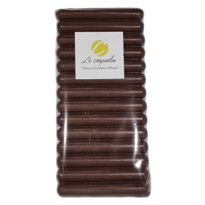 Élaborée à partir de beurre de cacao, de lait entier en poudre, de sucre roux et de fèves de cacao, elle offre une saveur douce, équilibrée et particulièrement agréable en bouche.