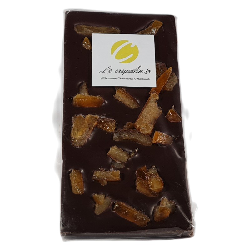 Cette tablette associe un chocolat noir 66 % fin et aromatique à des écorces d’orange confites, apportant une note fruitée et légèrement acidulée. Une alliance élégante, parfaite pour un café gourmand ou pour les amateurs d’agrumes.