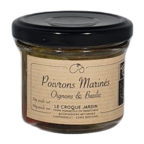 Poivrons* (70 %), vinaigre de cidre*, huile de colza*, jus de citron*, oignons* (4 %), basilic*, sel, poivre*.