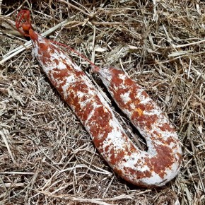 Ce chorizo sec est élaboré à partir de porc français élevé localement et assaisonné d’un mélange d’épices et de paprika qui lui confère sa couleur rouge caractéristique et sa saveur légèrement piquante. Son affinage lent lui apporte une texture ferme et une puissance aromatique équilibrée.