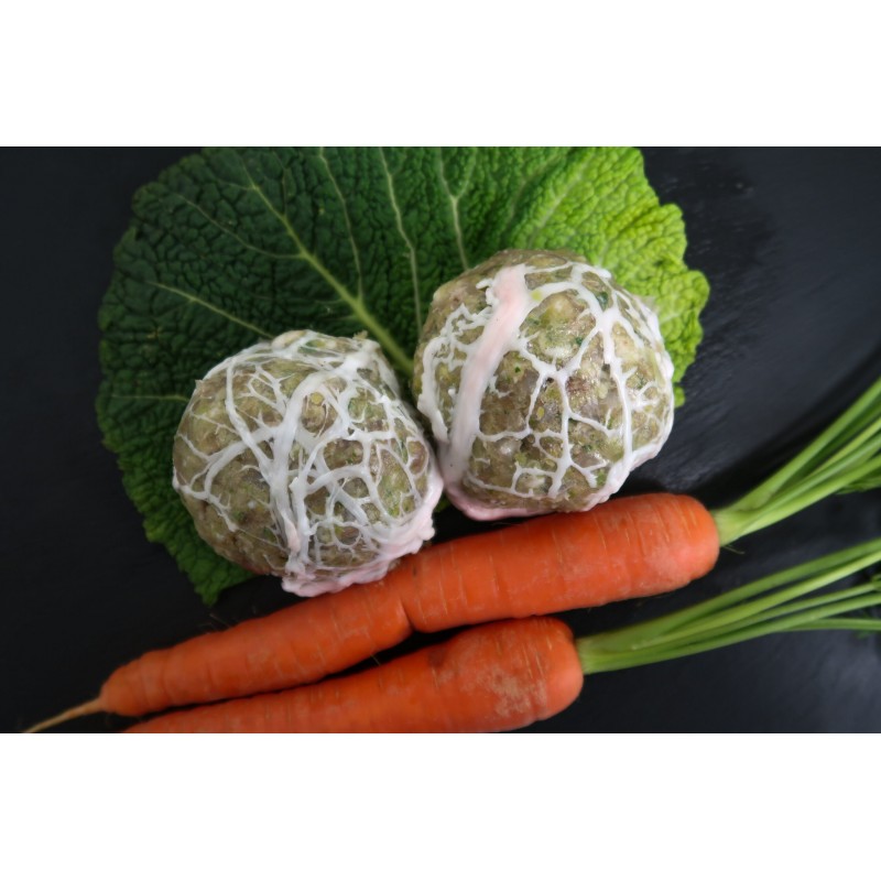 Préparées dans la plus pure tradition, ces caillettes associent viande de porc et légumes finement hachés (épinards ou blettes, selon la recette), assaisonnés avec soin. Leur cuisson lente révèle des arômes authentiques et une texture fondante, qui rappelle les recettes familiales d’antan.