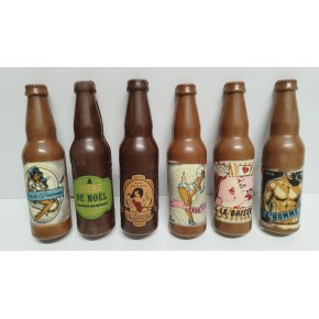 Ce coffret de 3 bouteilles de bière en chocolat est une création originale signée par un chocolatier local. Chaque bouteille, au format réaliste (18 cm de hauteur pour 5 cm de diamètre), est entièrement réalisée en chocolat au lait ou noir selon la version choisie.