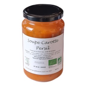Cette soupe associe la douceur naturellement sucrée de la carotte (50 %) à la fraîcheur du persil (2 %), relevée par une touche d’ail et d’épices. La pomme de terre et l’oignon apportent de la rondeur, tandis que le vinaigre de cidre et une pointe de sucre de canne équilibrent subtilement les saveurs.